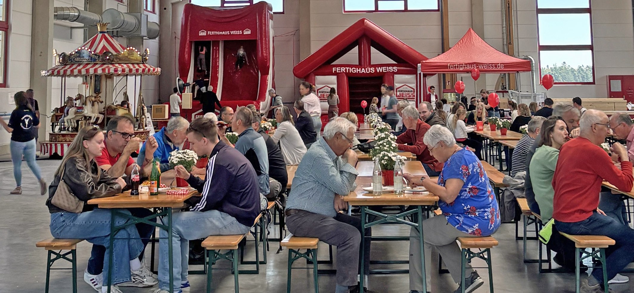 Dank der industriellen Vorfertigung sind Fertighäuser besonders schnell und planungssicher aufgebaut. Das verhindert Verzögerungen sowie Kostensteigerungen. Oben drein erhalten Bauherren von Mitgliedsunternehmen des Bundesverbandes Deutscher Fertigbau (BDF) auch eine Festpreisgarantie und einen vertraglich zugesicherten Fertigstellungstermin. Wie genau die Arbeiten in den großen Werkshallen der Hersteller aussehen und wie die individuelle Planung und Beratung abläuft, bekamen die Besucherinnen und Besucher aus erster Hand gezeigt bzw. vermittelt. Ebenso erhielten sie Tipps zur Finanzierung und Grundstückssuche sowie Detailwissen über die geprüfte Qualität und hohe Energieeffizienz moderner Holz-Fertighäuser. Und wer neben einem persönlichen Interesse am Hausbau auch noch die ganze Familie und eine gute Portion Hunger mitgebracht hatte, bekam auch hierfür ein passendes Angebot im Fertighauswerk – von der Hüpfburg über die Bratwurst bis hin zu Kaffee und Kuchen. BDF/FT